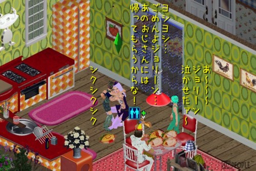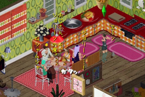 イスが4つしかないため、ジョリーンが食いっぱぐれてますよ!