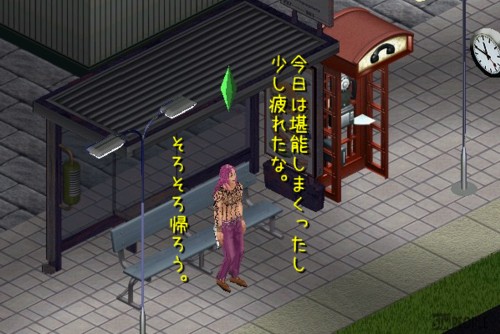 露天商のお兄サンは金庫放置して、バス停のベンチで休憩してた。